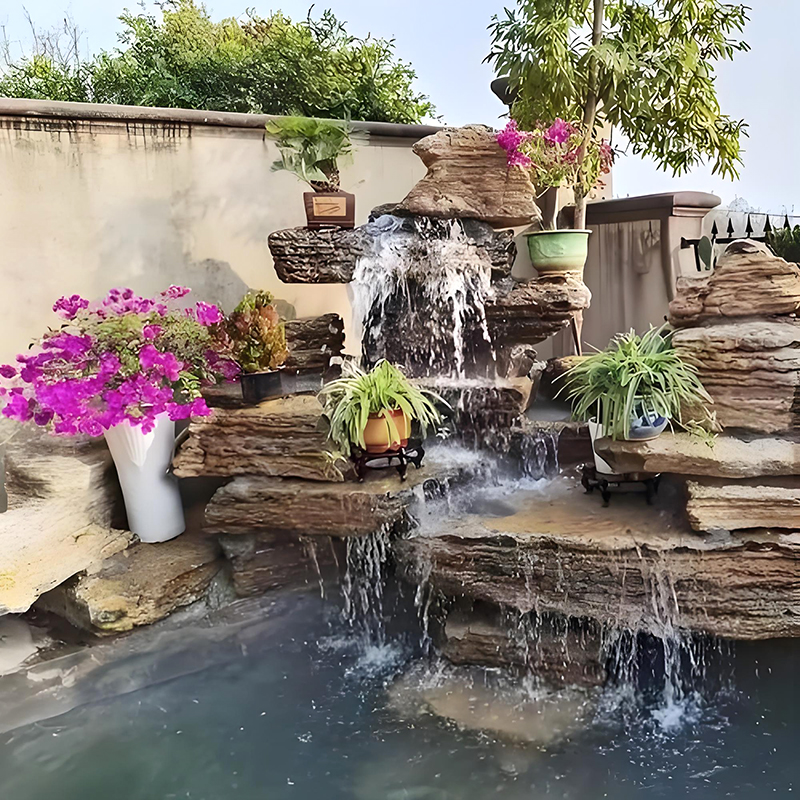 千层石因其表面的层状水平纹理而得名。它的颜色多为黑、白、灰,质地很硬。当你用硬物敲击金属时,你甚至可以听到金属的声音。因其造型奇特,具有独特的观赏价值,是制作假山瀑布的首选。